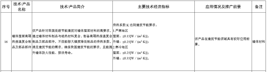 近日,工業(yè)和信息化部發(fā)布《建材工業(yè)鼓勵(lì)推廣應(yīng)用的技術(shù)和產(chǎn)品目錄(2023年本)》,墻體屋面高隔熱保溫復(fù)合制品及部品部件、氣凝膠保溫氈、高性能微纖維玻璃棉制品及其生產(chǎn)技術(shù)等絕熱節(jié)能材料相關(guān)技術(shù)列入其中。如下: